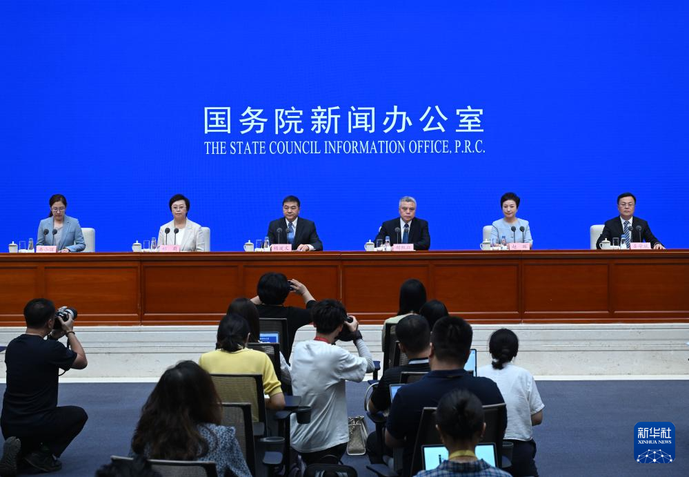 7月29日,国务院新闻办公室在北京举行新闻发布会,中央网信办(国家网信办)副主任杨建文,中央精神文明建设办公室专职副主任胡凯红,四川省委常委、宣传部部长郑莉,中国网络社会组织联合会秘书长赵晖,成都市委常委、宣传部部长辜学斌介绍2024年中国网络文明大会有关情况,并答记者问。新华社记者 金良快 摄