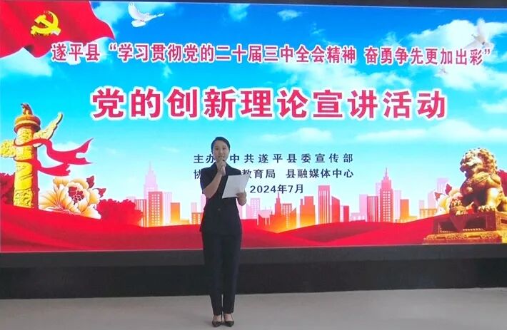 7月31日,“学习贯彻党的二十届三中全会精神,奋勇争先更加出彩”党的创新理论宣讲活动在县新时代文明实践中心举行。来自全县各乡镇、县直有关单位的30名选手参加宣讲。