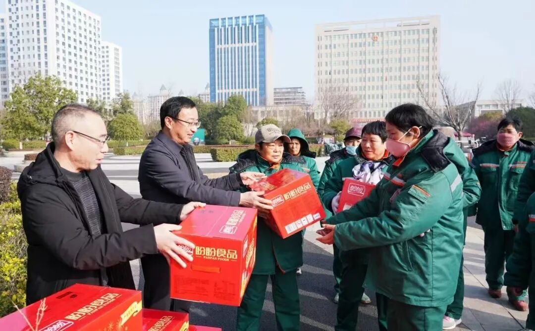 随后,志愿者们将提前准备好的方便面、面包、矿泉水送到园林工人手中。这些物资不仅承载着物质上的关怀,更传递了精神上的慰藉。接过慰问品,工人们脸上洋溢着朴实的笑容,纷纷表示这份来自财政局的关怀让他们倍感温暖,今后将以更加饱满的热情投入到绿化养护工作中,为建设美丽家园贡献自己的力量。