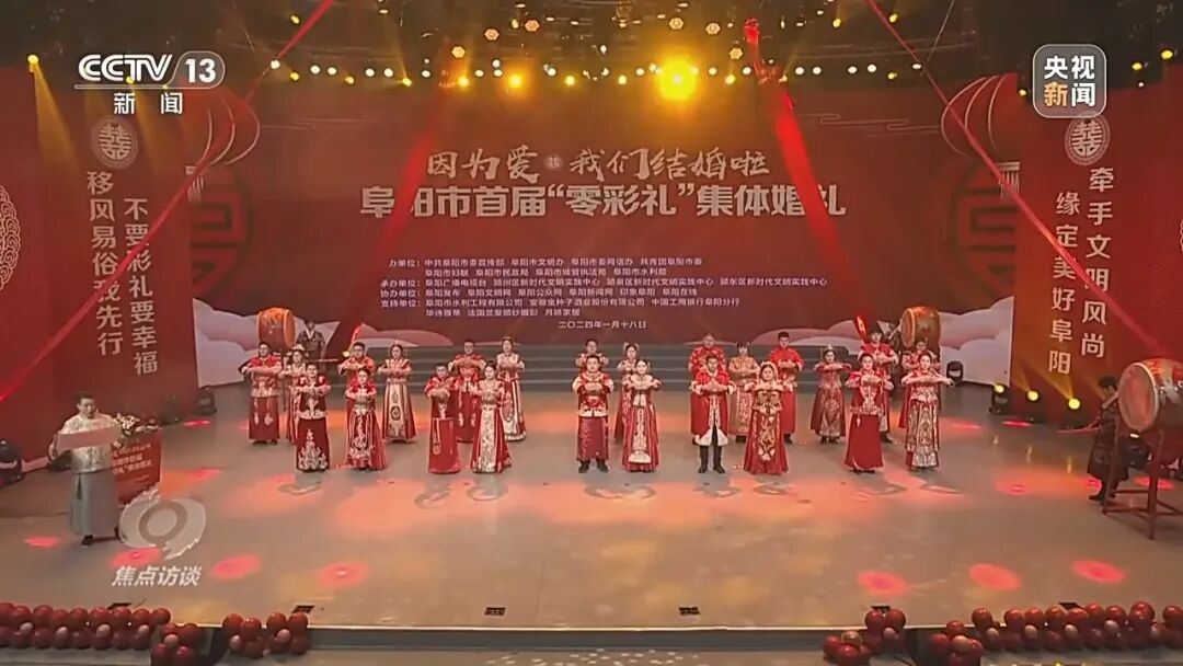 不久前,安徽阜阳当地40余家媒体共同直播了一场“零彩礼”集体婚礼,58对新人在亲人、观礼嘉宾及广大网友祝福声中,郑重许下相守一生的承诺。