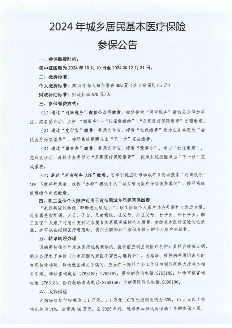 2024年城乡居民基本医疗保险参保公告