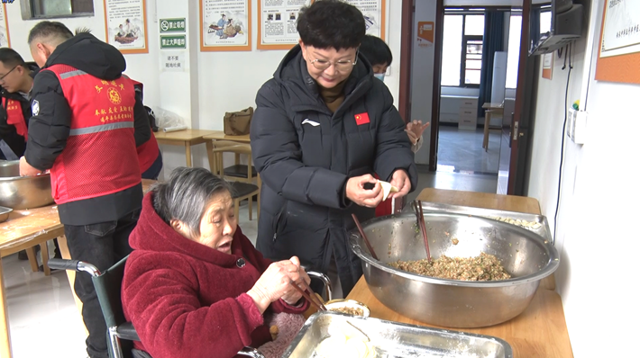 冬至当天,志愿者们带着面粉、馅料等新鲜食材早早地来到夕阳红养老服务中心投入到紧张而有序的包饺子活动中。大家围在一起,分工明确,忙而有序,有的负责揉面、擀皮,有的负责调制馅料包饺子,欢声笑语间,一排排形态各异的饺子精彩呈现。中心的老人们也纷纷参与到活动中,大家一边包饺子,一边聊天,其乐融融。