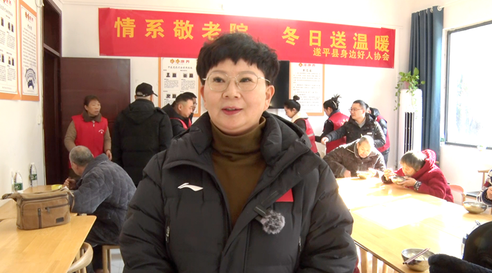 夕阳红养老服务中心总经理亓凤平:非常感谢遂平县好人协会的送爱心活动。百善孝为先,今后,我们夕阳红养老服务中心一定视老人为亲人,照顾好老人,共同托起最美夕阳红,让社会更加和谐。