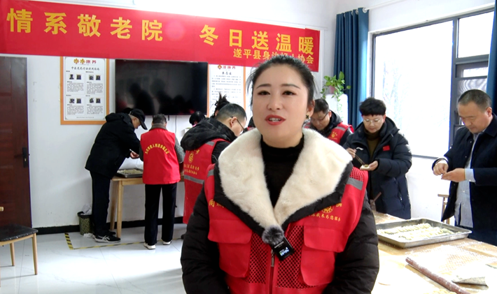 遂平县身边好人协会理事于莉:遂平好人协会10多名志愿者来为夕阳红养老服务中心老人们包上手工饺子,把这份爱心的饺子送到老人手上,让他们吃在嘴里,暖在心里。希望通过这种方式,让老人们感受到社会大家庭的温暖,传承我们中华民族的传统美德,传播爱心,弘扬社会正能量。